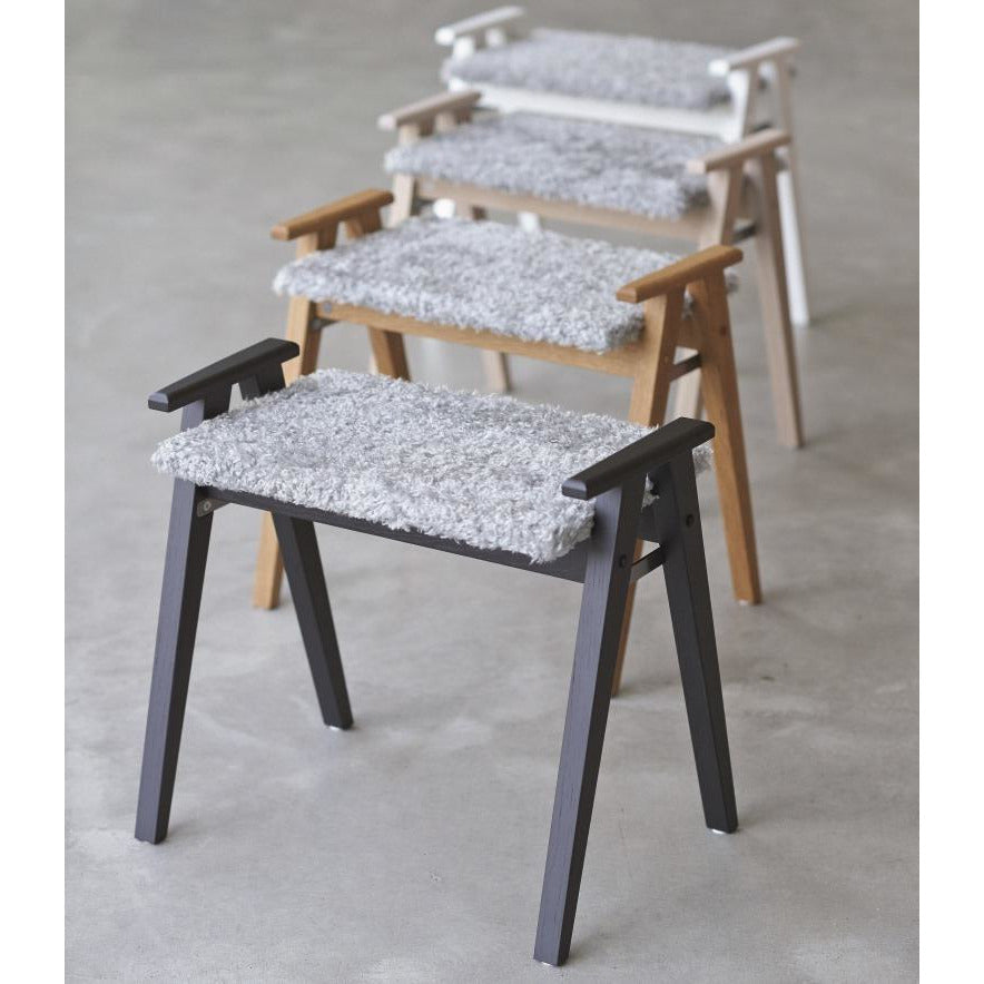 Bænken har en sæde højde på 46 cm., bredde er 57 cm og bænkens dybde er 39 cm. Bænken leveres med tre farver ægte fåreskind og to farver med fåreskindslook. Her sælges bænk i olieret eg.