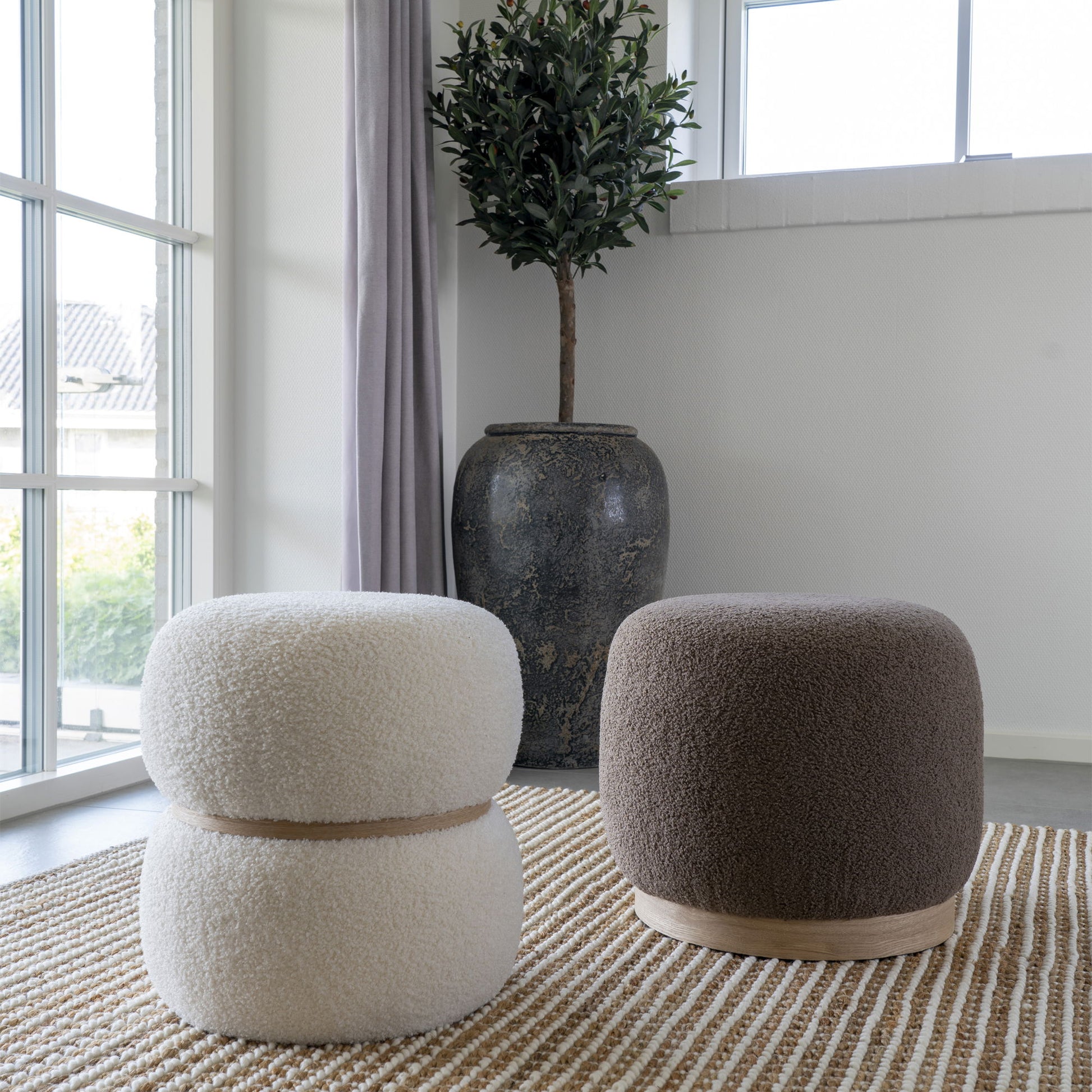 Belfort Puf - Puf i bouclé, brun, Ø44,5x40 cm, HN1238