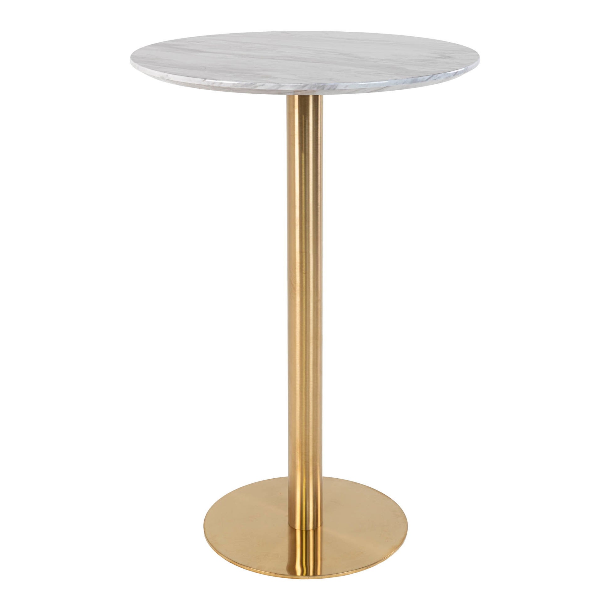 Bolzano Barbord - Barbord, marmor look bordplade, hvid, messing look base ø70x105 cm