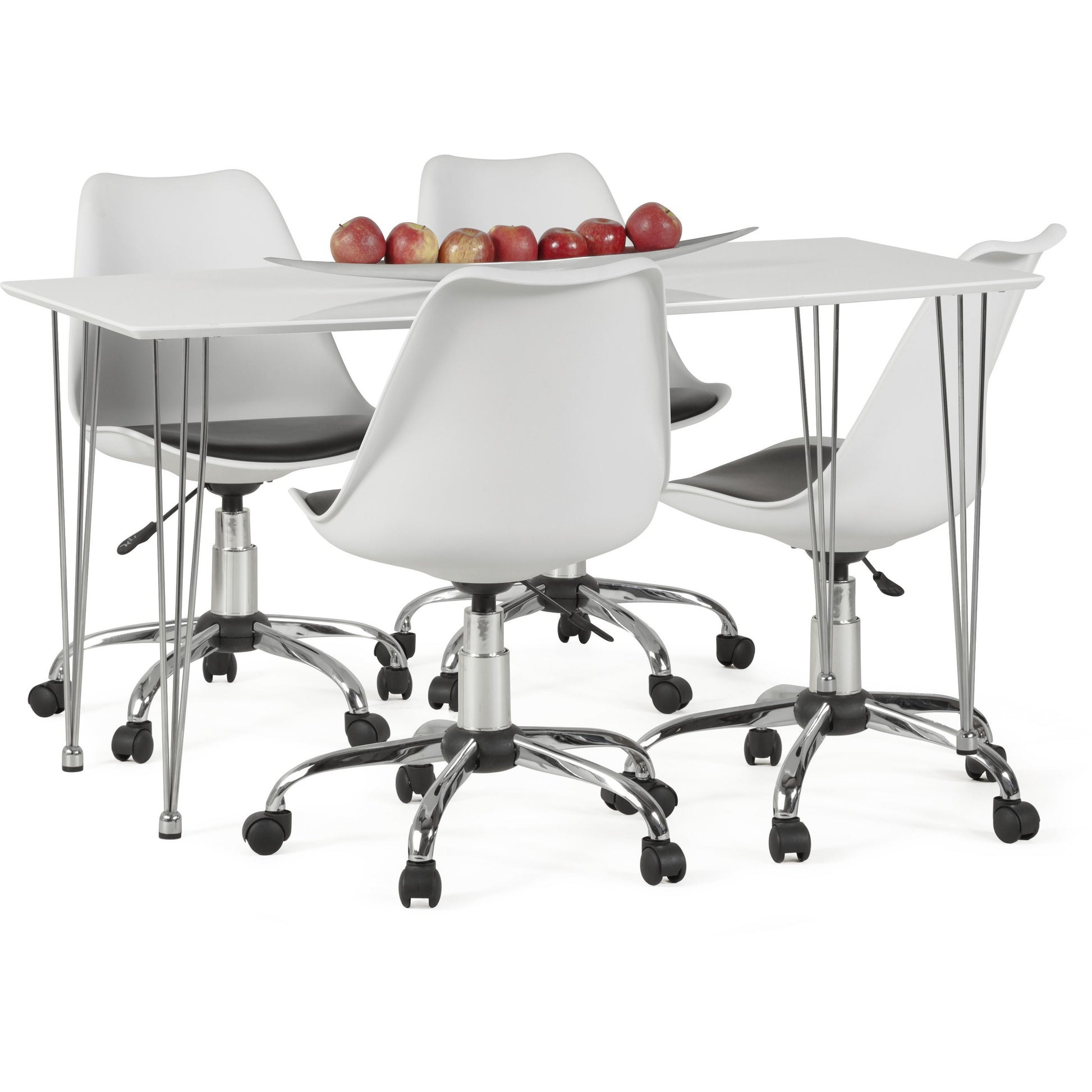 EDEA er en moderne, ultra-praktisk stol, der er både attraktiv og usædvanlig behagelig. Det omsluttende skal ryglæn giver fremragende rygstøtte. Det polstrede sæde af imiteret læder af høj kvalitet roterer 360 ° og hviler på en metalramme med hjul, hvilket giver den ultimative mobilitet. Det er let at rengøre, hvilket gør det ideelt til alle arbejdsmiljøer.