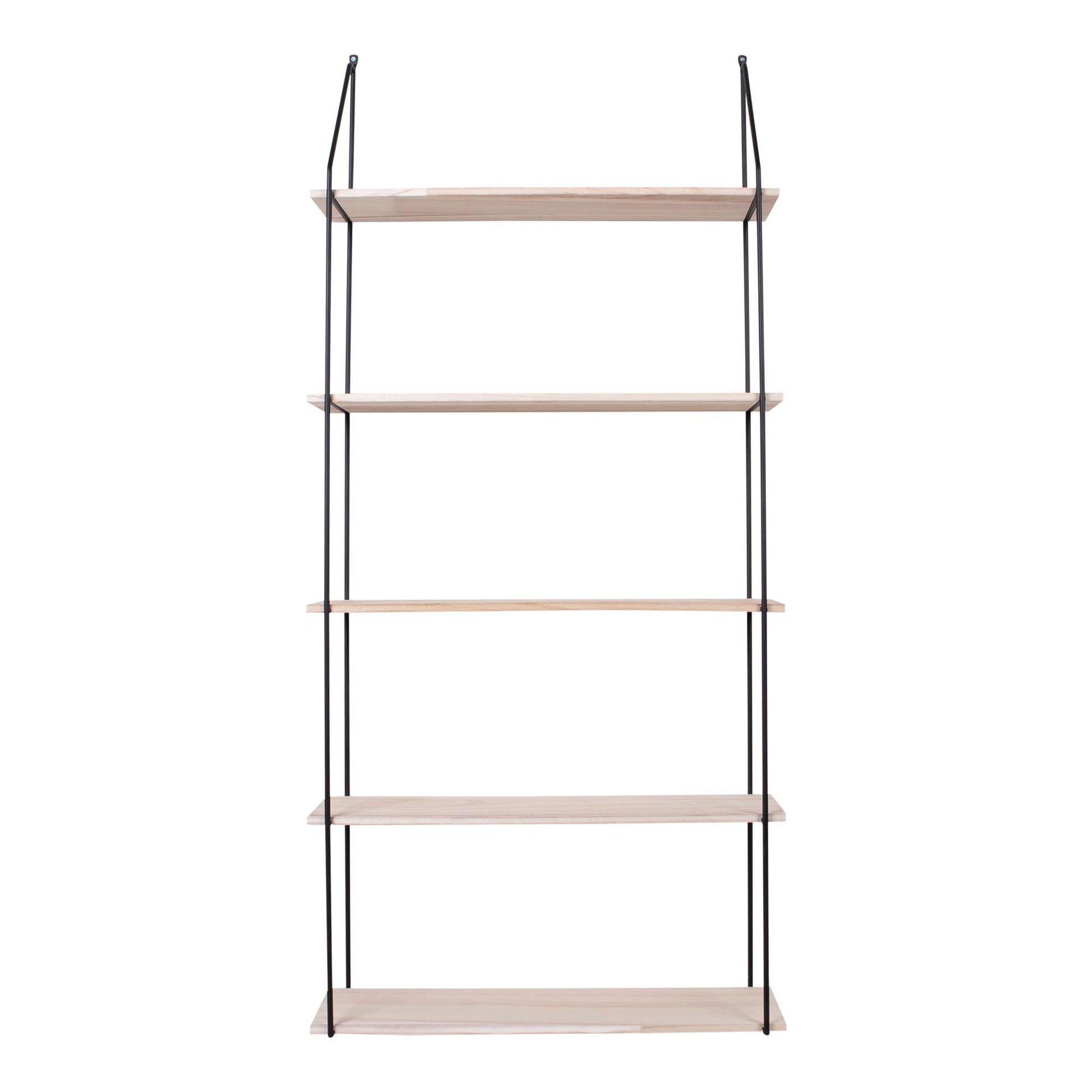 Eindhoven Hylde - Hylde, 5 træhylder, sort ramme 65x17x145 cm
