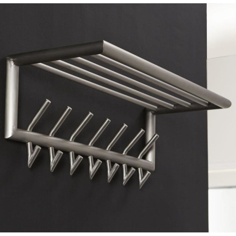 Hattehylden er en del af en serie i børstet rustfrit stål - eksklusivt og designmæssigt flot.