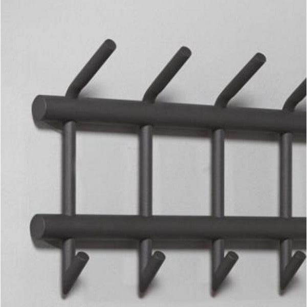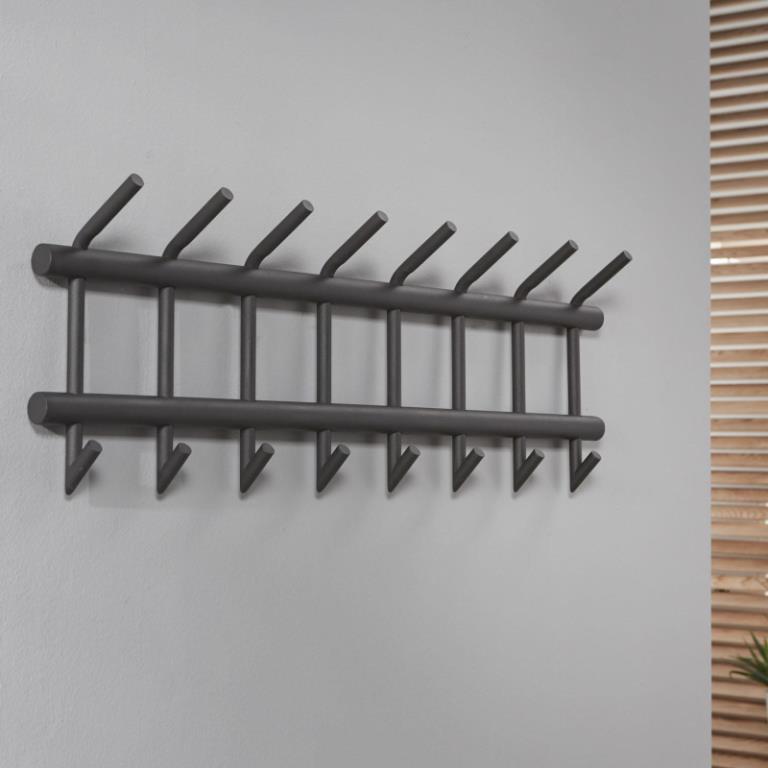 Klassisk flot knagerække udført i runde stålrør, mat grå lakeret. Flot knage til entreen.