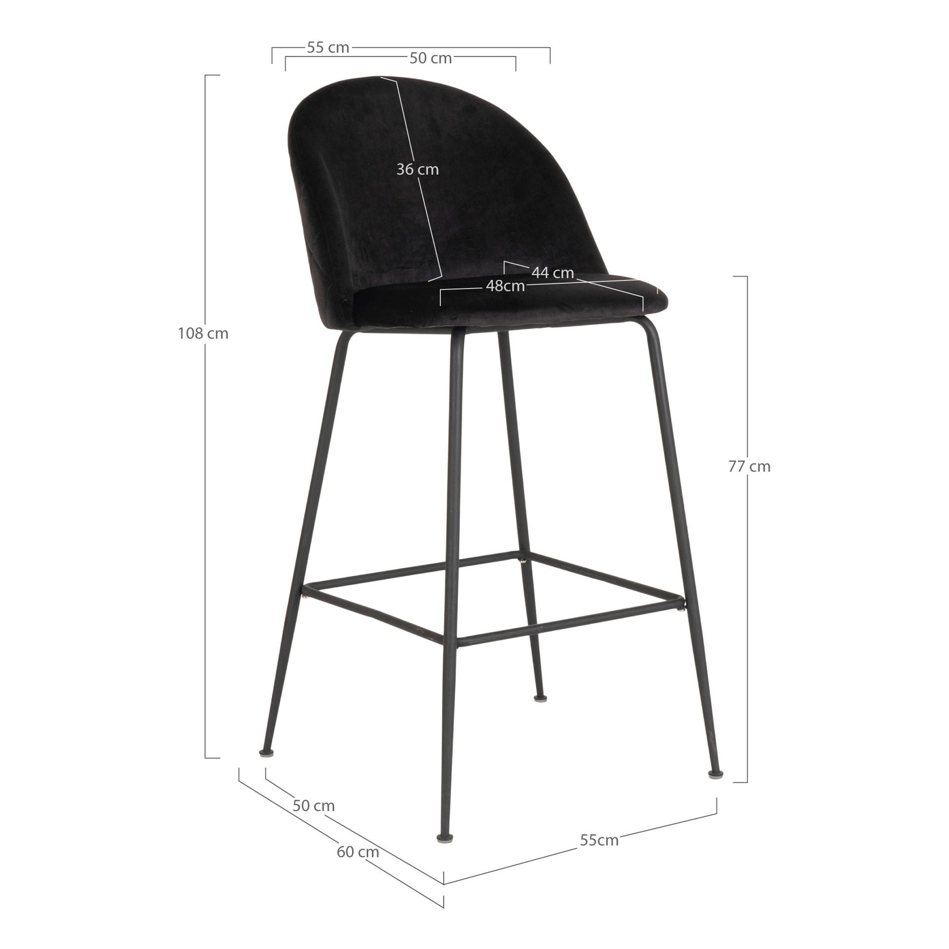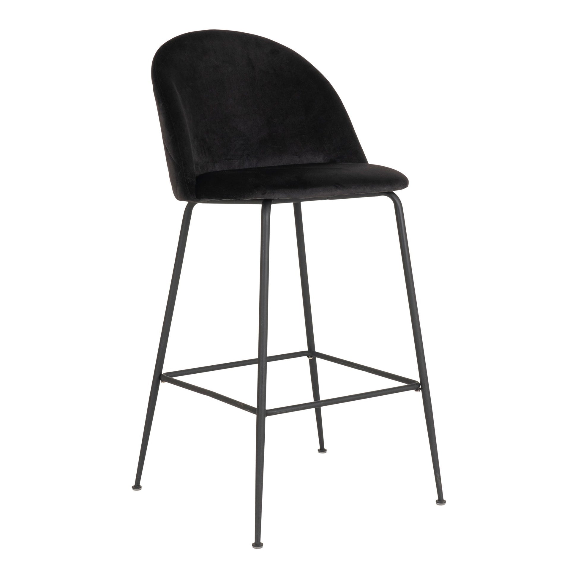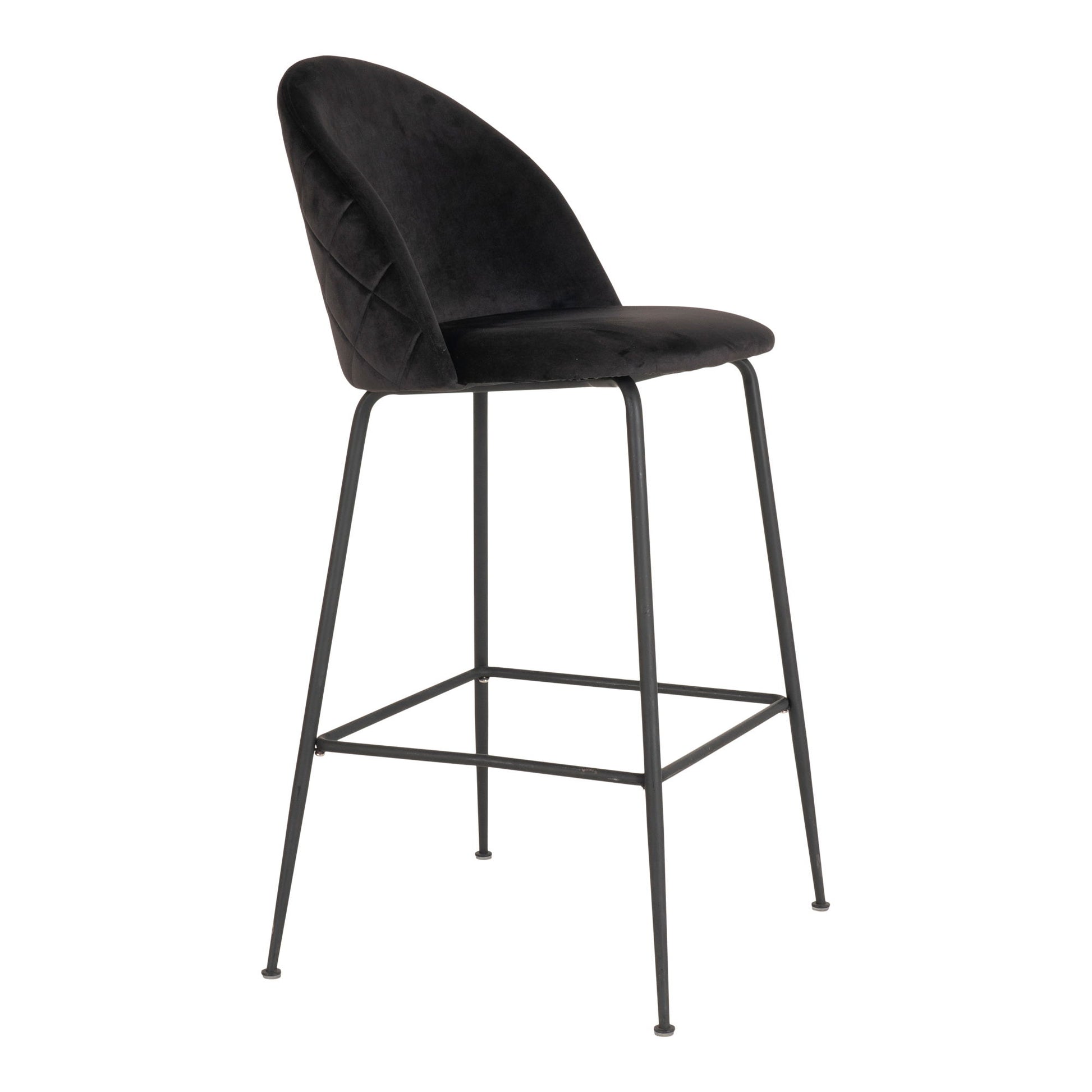 Lausanne Bar Stol - Barstol i velour, sort med sorte ben, HN1207
