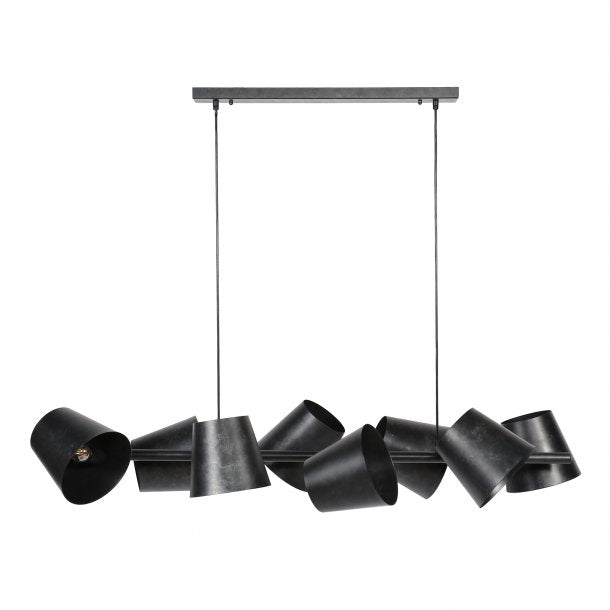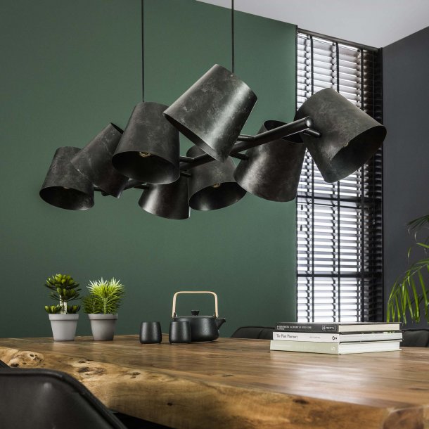 Lampen kombinerer 8 patineret metal skærme med flotte vintagepærer, hvor vi anbefaler at tilkøbe vores model Z 8463-39A.