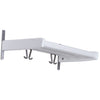 Her sælges hattehylde i træ og slebet stål med en dybde på 31,5 cm, en højde på 18 cm og en bredde på 59 cm.