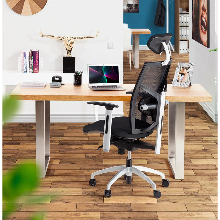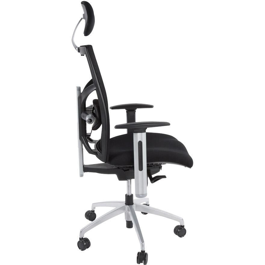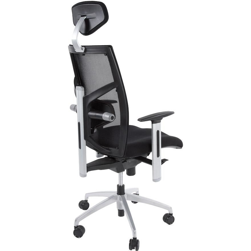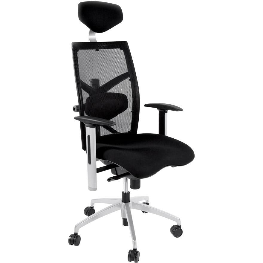 Ergonomisk og yderst behagelig 'MIT' kontorstol er designet til intensiv professionel brug. Robust og moderne, det giver adskillige justeringsmuligheder: sædehøjde, ryglæn vippes, armlæn, nakkestøtte og lændestøtte. Et fremragende køb til lange arbejdsdage.