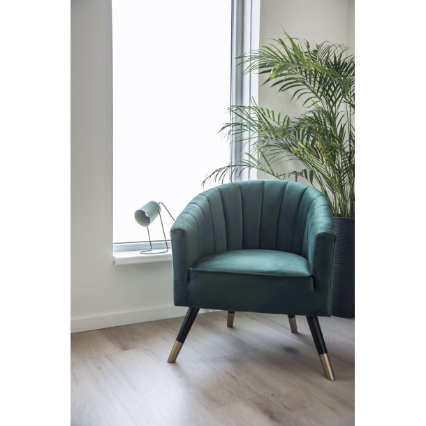 Har du lyst til et strejf af luksus og glamour i dit hjem? Så er denne Leitmotiv lænestol Royal med et betræk af fløjl og ben med detaljer i guld det perfekte valg!