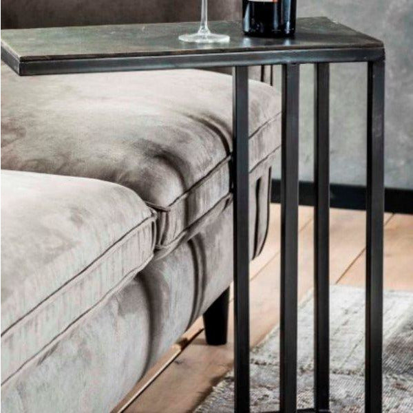 Bordet er rå i sit udtryk - lavet i sandblæst sort nikkel og med en perfekt arbejdshøjde, er det et bord man ikke ønsker at undvære omkring stuens siddepladser. Passer perfekt under stort set alle typer af stole/sofaer.