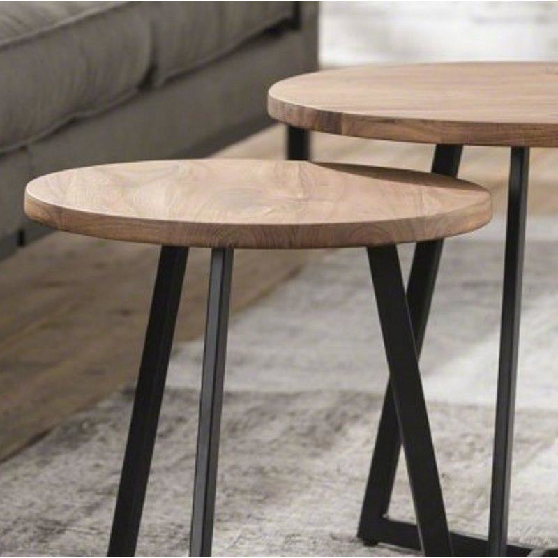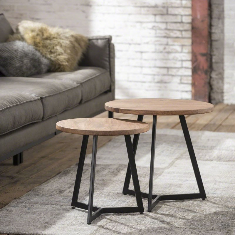 Sofabordssæt - kombination af to runde borde, ø 40 cm og ø 50 cm. og sortlakeret stål. Disse borde i massiv acacietræ er utrolig flotte og trendy og passer perfekt i Nordiske stuer med klassiske sofaer eller hvilestole. Stilen er rustik og bordet vil fremstå sådan.