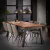 Spisebord i massiv naturlig bølget akacietræ og grå metalben. Kraftigt designet spisebord med 25 mm. tyk masiv topplade i kombination med grå metalben med bredde 6 cm.
