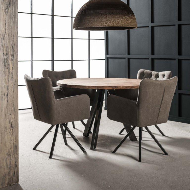 Bordet er i sit udsende rå og kraftfuld - bordet i ø 120 cm med de kraftige børstede rustfrie stålben passer perfekt i de nordiske hjem og bryder med de hvide stuer. Bordpladen er lavet i en kraftig 38 mm tyk massivt naturligt akacietræ. Dette bord vil pryde spisestuen i mange år fremover.
