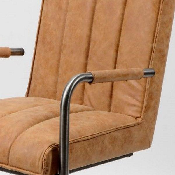 Stolen har blødt brunt PU læder med dobbelt syninger. Armlæn for god sidde komfort, ekstra bredde og stål stel. Passer i design til alle typer af borde og dette sammen med de 3 mulige farver på læder gør dette til en perfekt stol til køkken-alrummet eller stuen.