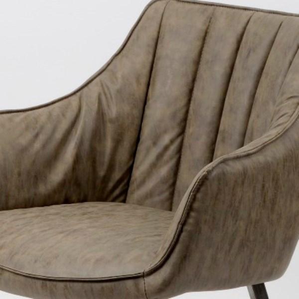 Stolen har blødt gråbrun PU læder med dobbelt syninger. Armlæn for god sidde komfort, ekstra bredde og trendy moderne krydsstel i sort stål.
