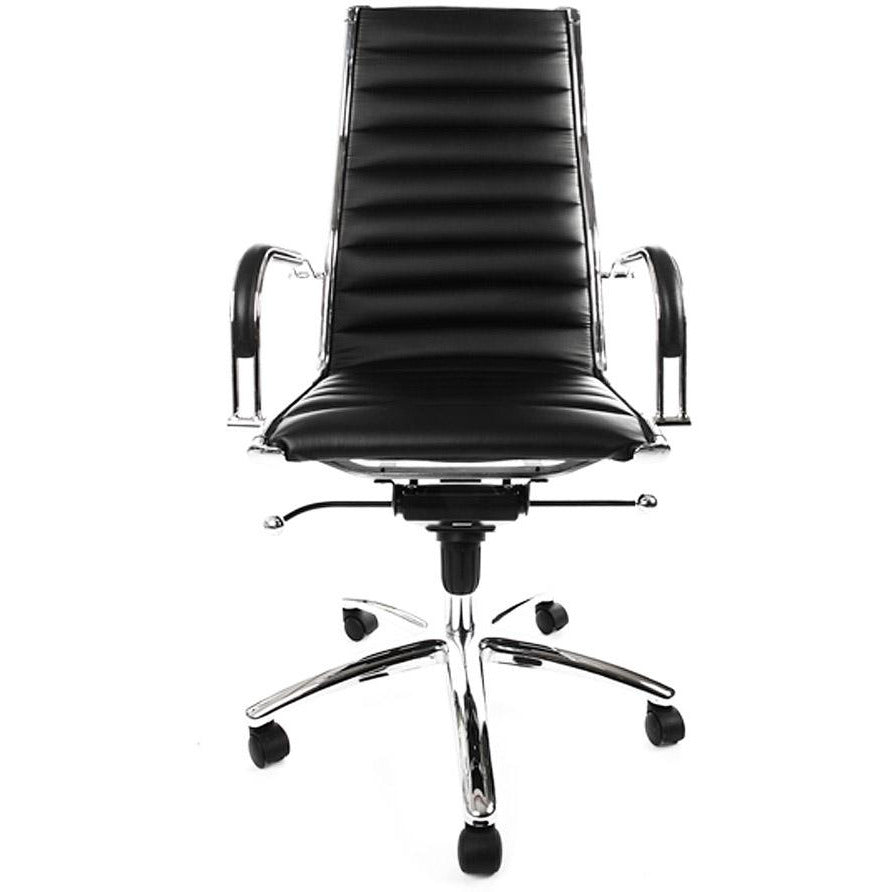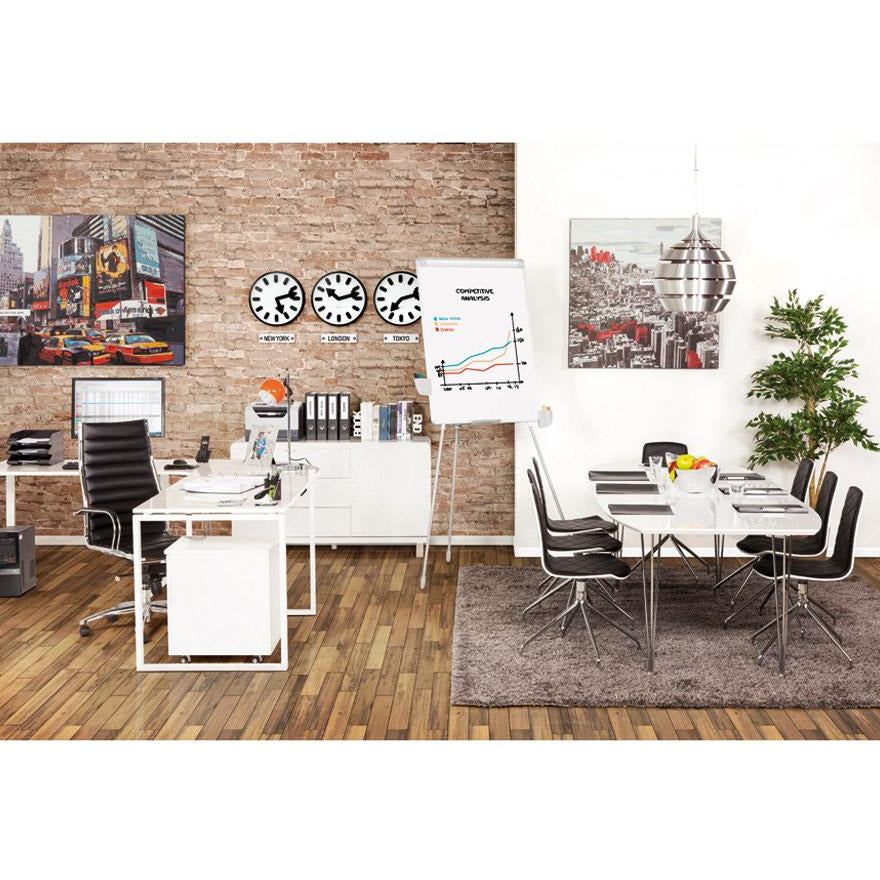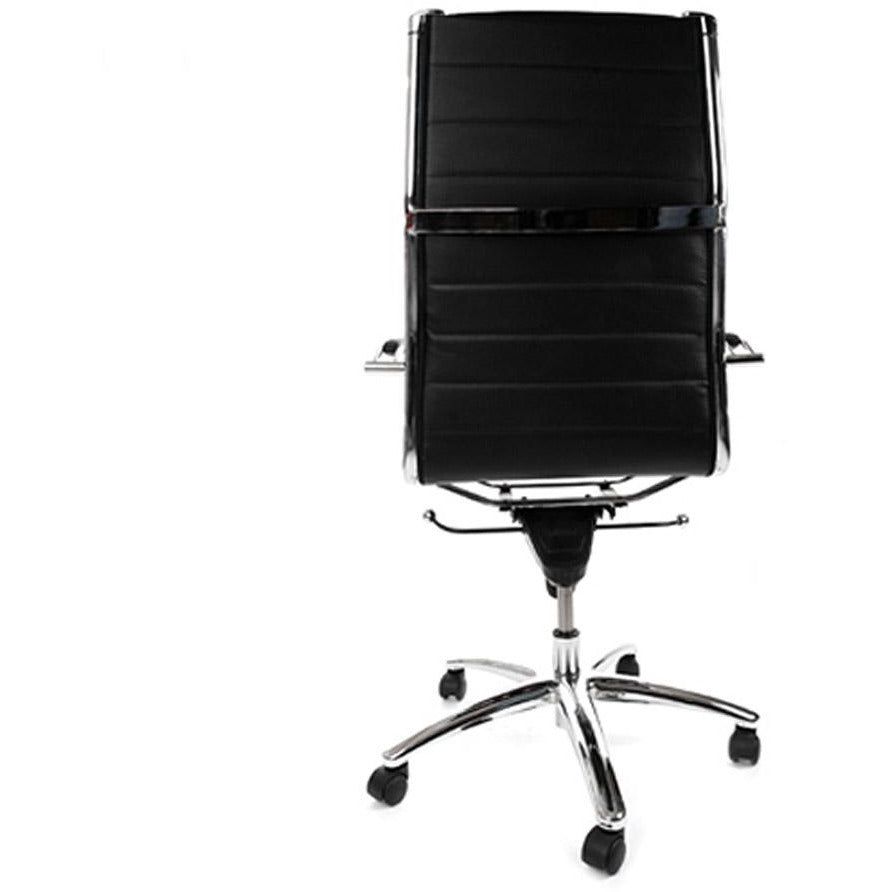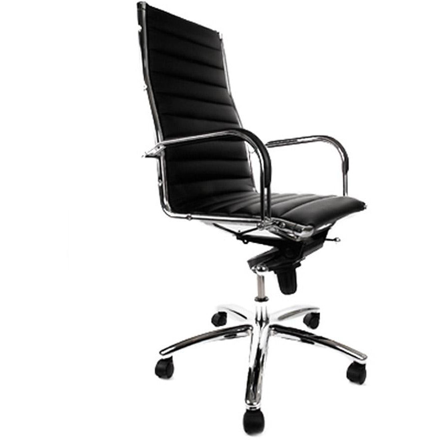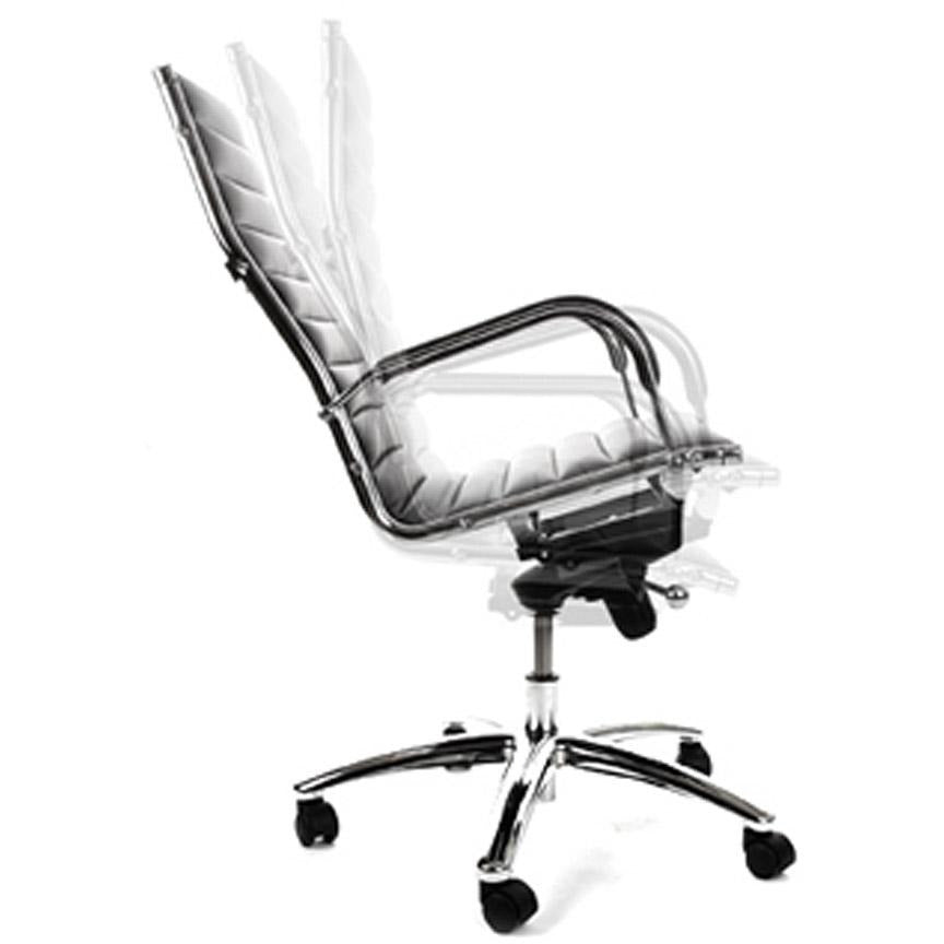 Kontorstol Torino har et højt niveau af design og komfort. Den smarte kombination af imiteret læder af høj kvalitet og det forkromede metal giver denne stol et uovertruffen og tidløst look. Sædet kan også justeres i højden, og ryglænet kan justeres.