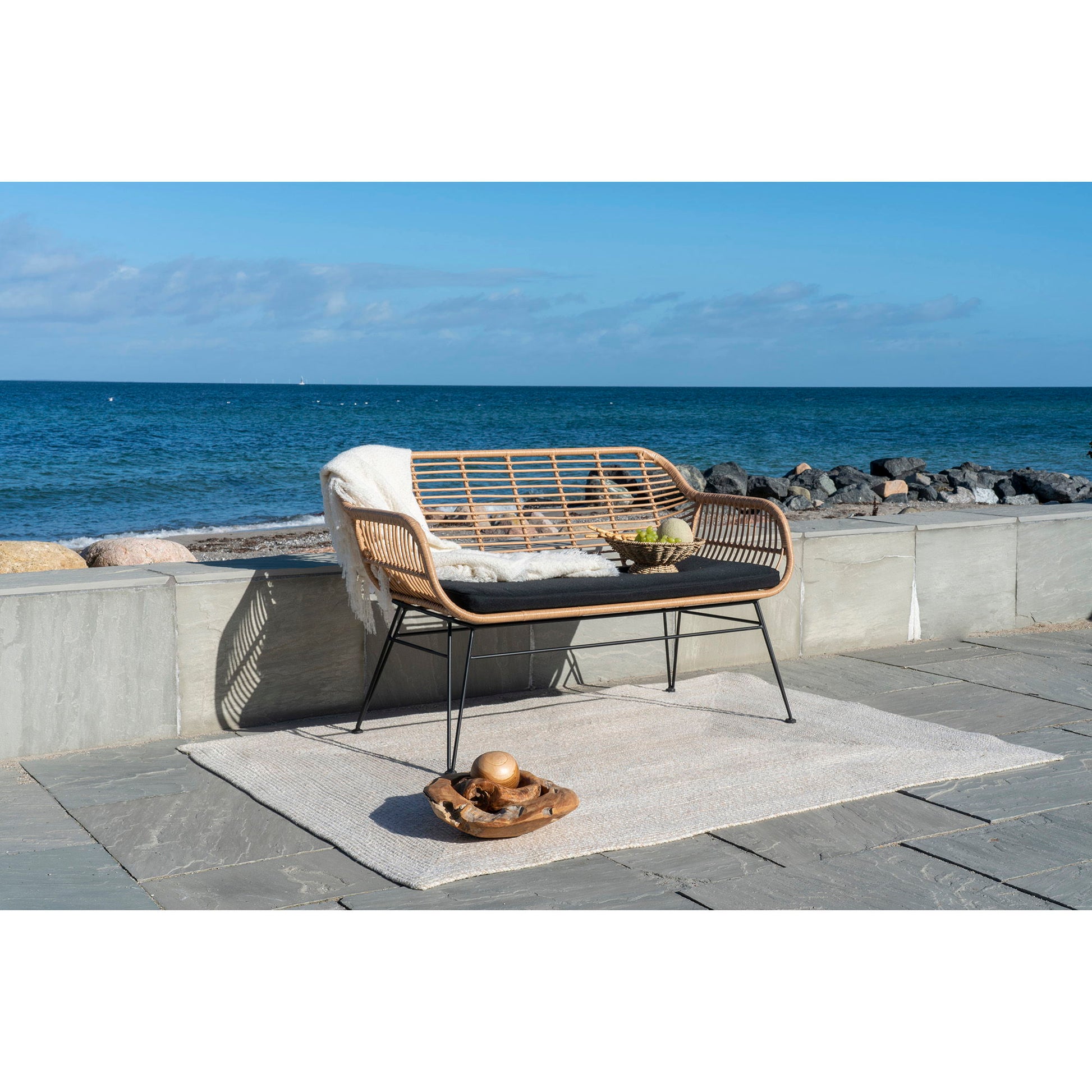 Trieste Sofa - Sofa i polyrattan med hynde, natur med sorte ben