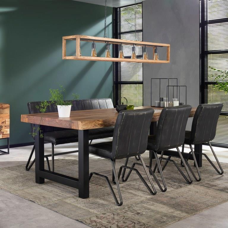 Robust og kraftigt plankebord udført som spisebord i 8 cm. massiv natur lakeret akacietræ med bølget naturkant. I denne serie findes der ikke 2 borde der er ens, alle er unikke.